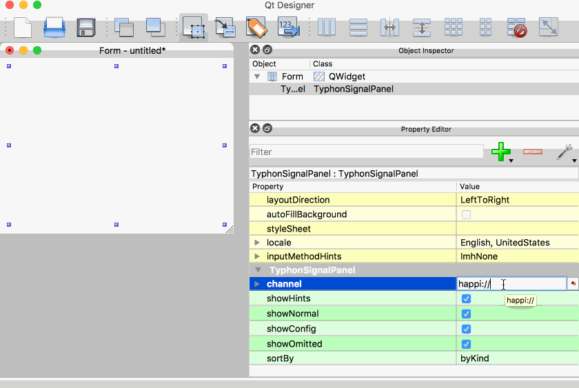 By using the typhos built-in “signal” plugin to connect to the signal with the dotted ophyd name, just as you would use in an IPython session. In the designer “channel” property, specify: